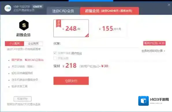 根据查找到的资料来看,CAD迷你画图扩容云盘空间共有5个收费价格可供大家选择,分别是198元一年,118元半年、980元永久以及248元一年、155元半年的价位可选。