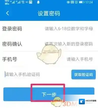 6、设置APP密码,再输入手机号和验证码,点击“下一步”。