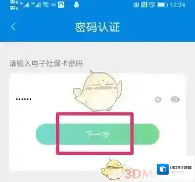 5、输入电子社保卡的密码,点击“下一步”。