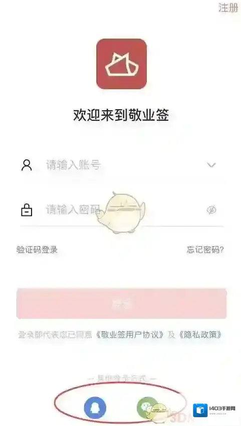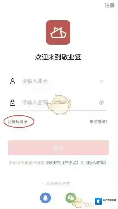 1、打开手机上的敬业签,在登录页面找到“忘记密码”。