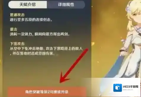 5,这时候就可以看到升级需要的达到的条件角色突破等级2可继续升级。