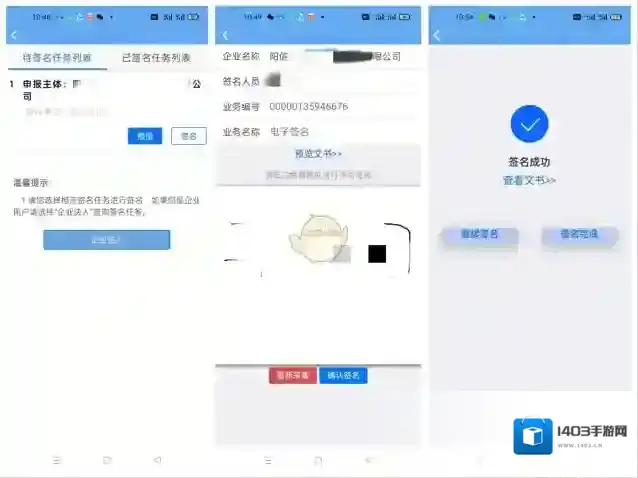 4、提交之后,通过“办事进度查询”查看企业登记状态 ,当登记状态为“待签章”时,点击“签名”(企业所涉及签名人员均需下载“爱山东”APP进行签名,并且认证等级L2以上),所有人员签名成功后,点击“提交”。
