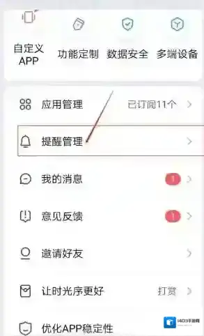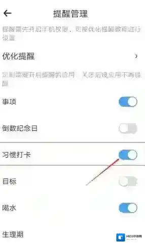 《时光序》习惯打卡开启方法 2025-07-29 11:49:27 编辑: 尛鬼旸旸丶 分类: 应用教程 • 阅读: 593 1、打开已登录的时光序APP,点击右下角我的。 2、点击提醒管理。 3、进入提醒管理页面,点开习惯打卡按钮即可。 本文内容来源于互联网,如有侵权请联系删除。 发表回复 请登录后评论... 登录后才能评论 评论列表 ( 0条)