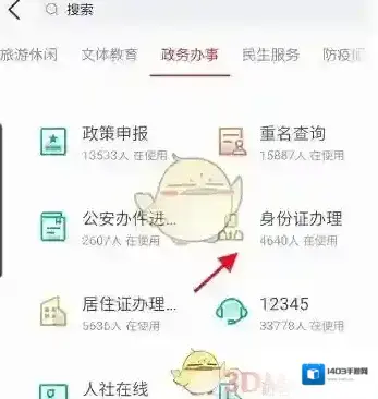 4、点击政务办事专栏,点击下方的身份证办理进度查询进入