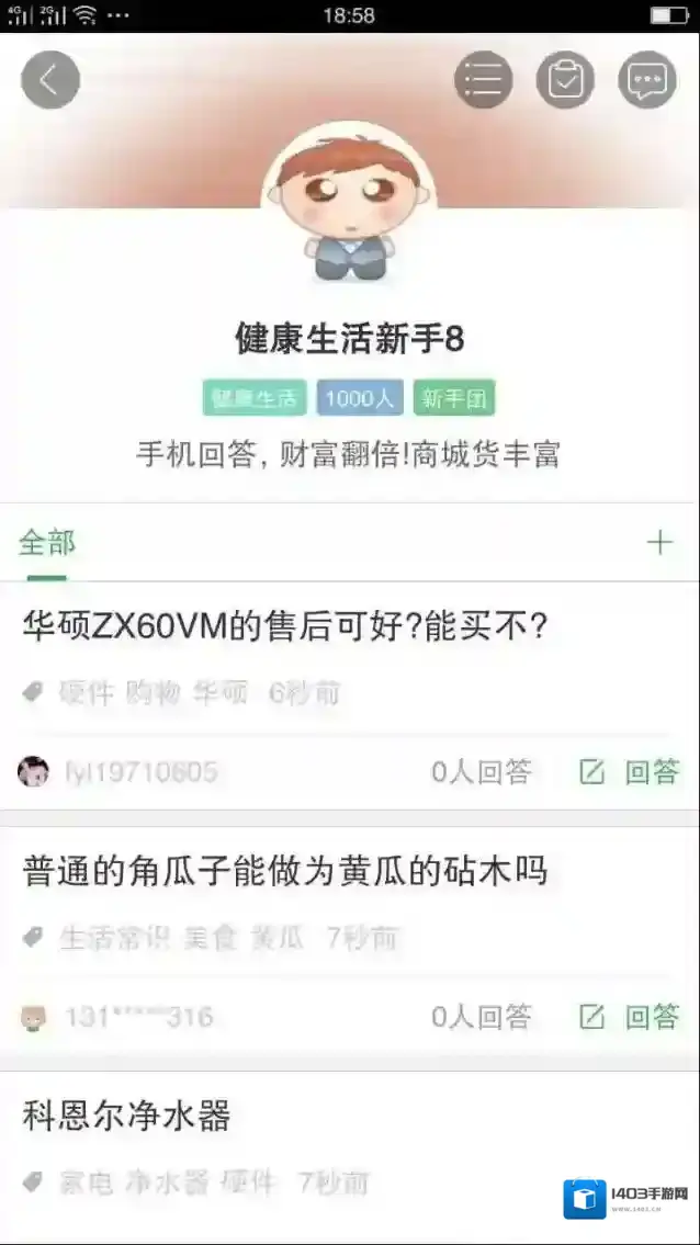 5、在“团队动态”的上方是进行团队的打卡,点击“健康生活新手8”这个团队就可以进到打卡的页面,在右上方的中间打√图标就是打卡的,如下图所示: