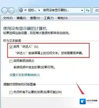 7、在打开的新窗口上面勾选“启用讲述人”,如图所示。