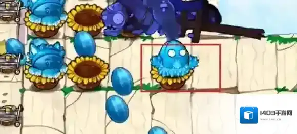 4、接着等图中僵尸到达花盆处后放置一个影流窝瓜王。