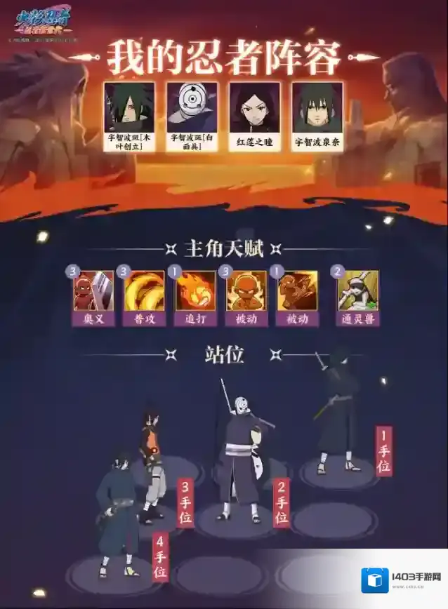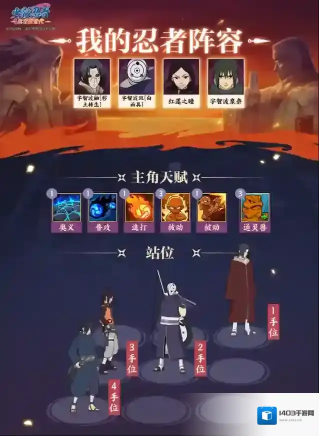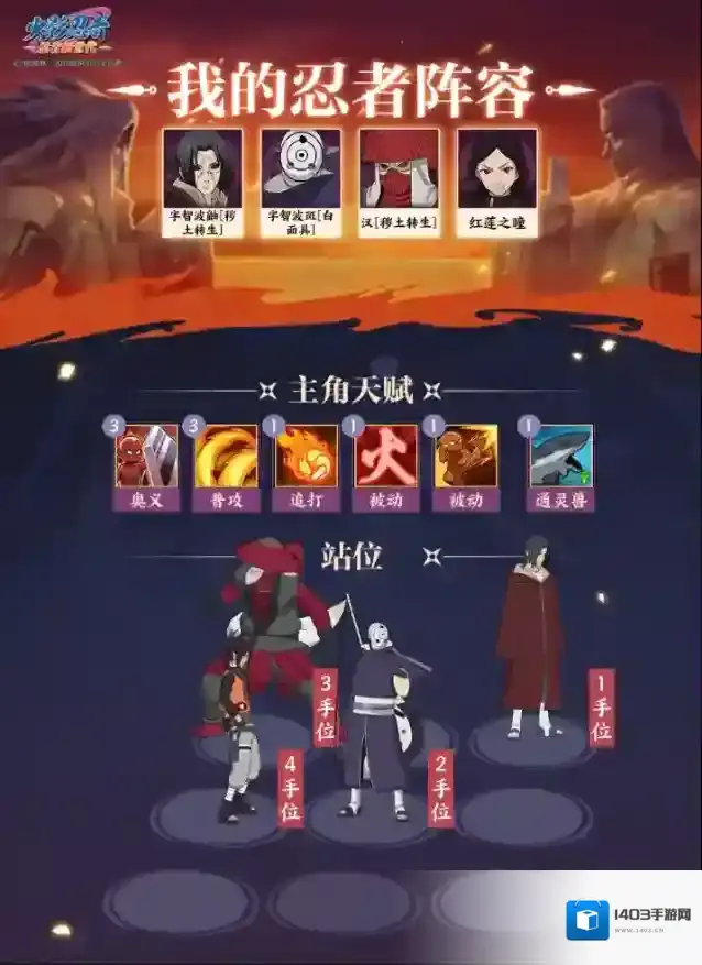 目前在《火影忍者:忍者新世代》中宇智波斑[白面具]的尝试阵容如下: