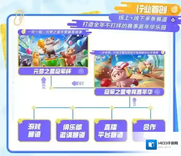 本届“冠军之星”锦标赛的直播平台赛道、俱乐部赛道以及合作赛道三大线上赛道陆续登场了!直播平台赛道在抖音、斗鱼、虎牙、快手、微博(按首字母排序)共五大平台陆续开赛!由各大平台内的元梦之星主播及游戏用户作为参赛选手,并在参赛期间开启全程直播。这将是一场元梦主播和广大玩家之间的精彩对决,最终由五大平台自办赛产生的多位优胜星宝将晋级线下决赛。
