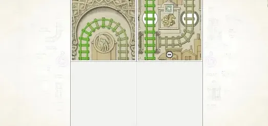 3.放大图2地图,图1向←两次,放大柱子地图。图2放大绿色轨道,图2移至图3,火车行驶到紫色轨道;
