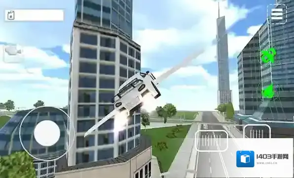 3、调整飞行汽车的角度(箭头指向转向动作),规划空中路线,避开城市建筑,平稳操控,完成飞行挑战,探索更多区域。