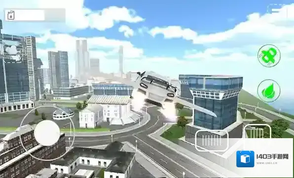 1、操控飞行汽车(界面显示空中姿态),通过左侧虚拟摇杆调整方向,右侧按键控制飞行,适应高空环境,开启飞行之旅。