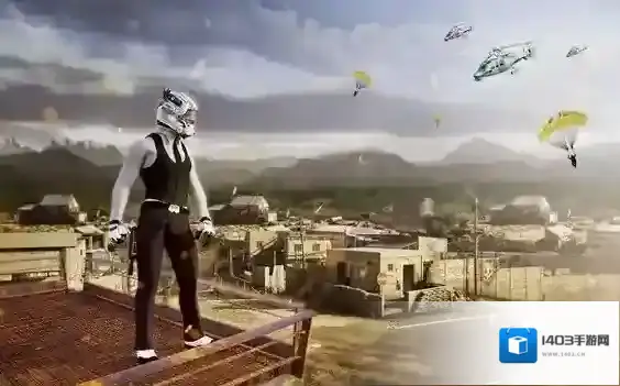 3、出生加载场景,角色在飞机旁,准备进入大逃杀地图,显示击杀敌人任务和倒计时,即将跳伞,开启生存对战,展现游戏开局流程。