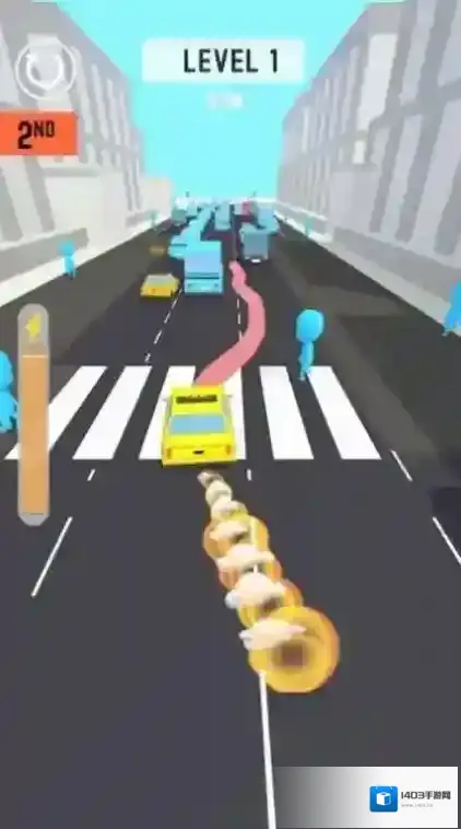 2、过斑马线,超蓝色车辆,吃加速道具(黄圈),升“2ND”,再冲“1ST”。