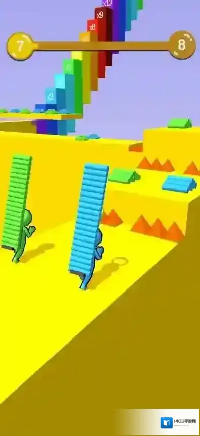 2、赛道策略规划:提前观察赛道障碍分布,标记梯子收集点与近道路线,对密集障碍区预留足够梯子,利用对手搭建的梯子缩短距离,在竞速中灵活调整策略。