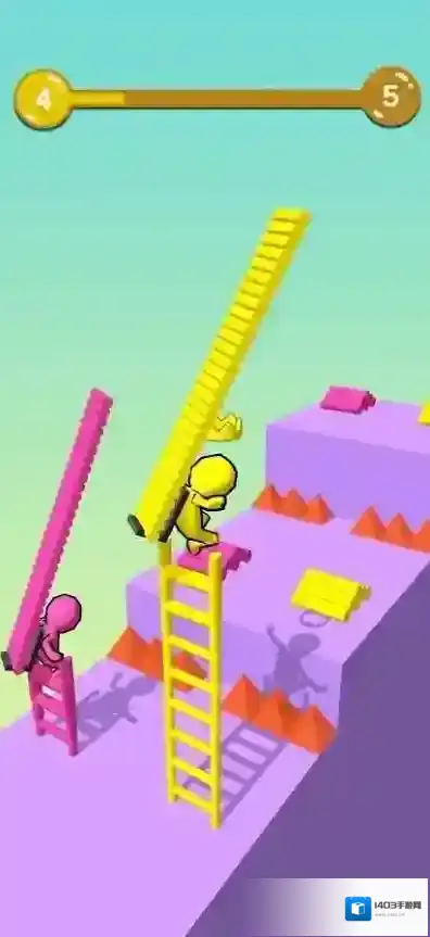 3、实时竞速对战:支持多人同屏竞技或在线匹配,对手会抢夺梯子资源或破坏玩家搭建的爬梯,需在竞速中既要躲避障碍又要干扰对手,通过抢先到达终点赢得比赛胜利。