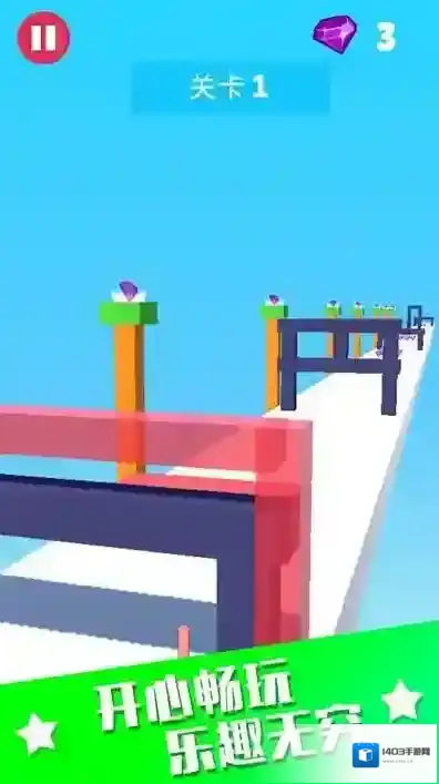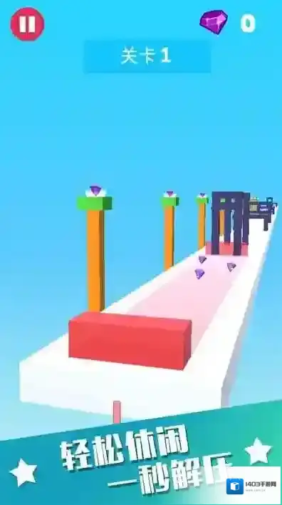 2、滑动屏幕控制移动,避开红色障碍物并收集紫色宝石。
