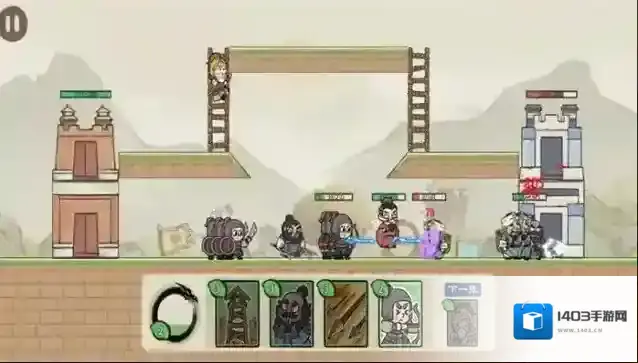 2、在牌库选武将,编排出战阵容,进入关卡,操控角色策略战斗。
