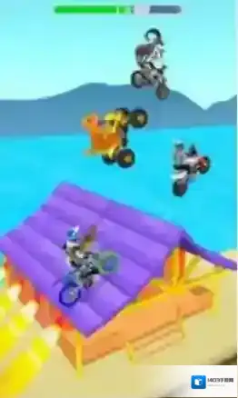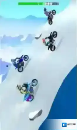 3、冲绿色山坡,稳控摩托,过障碍,保进度条,到终点,赢奖励,解锁新摩托(如Wolf)。