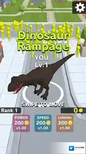 2、进入后,滑动屏幕控制恐龙移动,撞击黄色小人,积累成长资源。