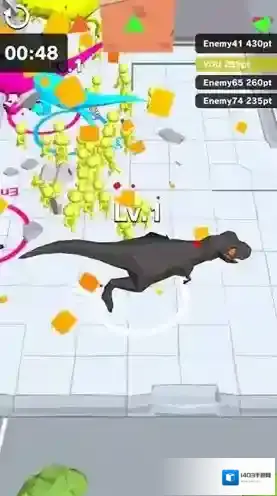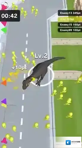 2、资源收集成长:在破坏过程中收集硬币与营养资源,用于提升恐龙的体型与能力,随着恐龙变强,破坏效率与范围大幅提升,解锁更震撼的破坏效果。