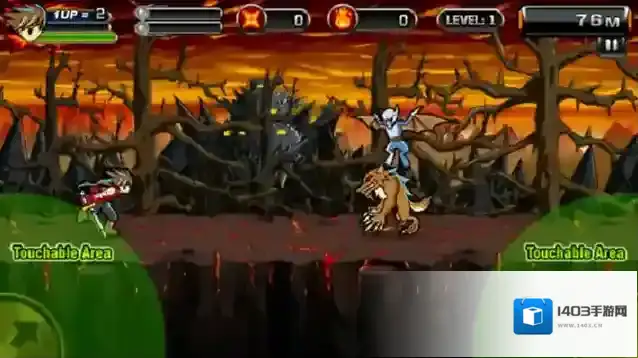 2、利用屏幕两侧的【Touchable】控制角色移动和攻击,注意观察敌人动向,躲避攻击。
