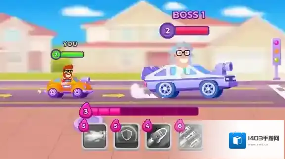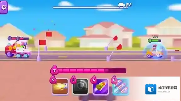 3、进入关卡后车辆会自动前进,下方有四种道具可以让玩家使用。