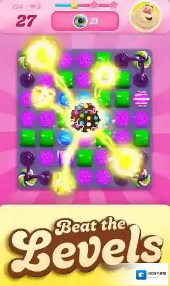 糖果粉碎传奇(Candy Crush Saga),也可以简称为糖果传奇,是一款非常休闲有趣的消除闯关类手游。在游戏中,我们将会见到五颜六色的糖果,通过移动来连接三个或三个以上的糖果进行消除,并且一次性消除四个或以上的糖果还将获得特殊道具,能够大范围的消除通过,帮助你顺利过关!另外,游戏整体采用了较为清新可爱的欧美卡通画风,无论是背景人物形象,还是糖果的设计,都是非常的精致,让你享受趣味消除体验的同时,还能有非常棒的视觉享受!