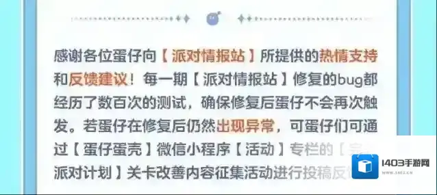 蛋仔派对 【派对情报站】蛋的眼睛就是尺,bug入侵立刻阻止! 蛋仔派对派对 蛋仔派对情报站 蛋仔派对蛋仔 蛋仔派对入侵 蛋仔派对阻止 派对情报站将持续优化与更新 派对关卡与玩法 每一位蛋仔的想法都对我们至关重要2025-10-13 -