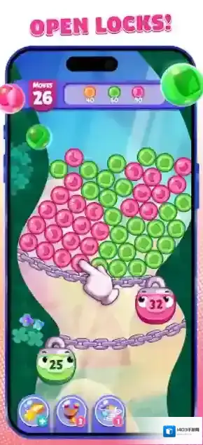 3、尽可能的一次性消除更多的泡泡,将会释放出特殊的力量,帮助你更好的去消除泡泡。