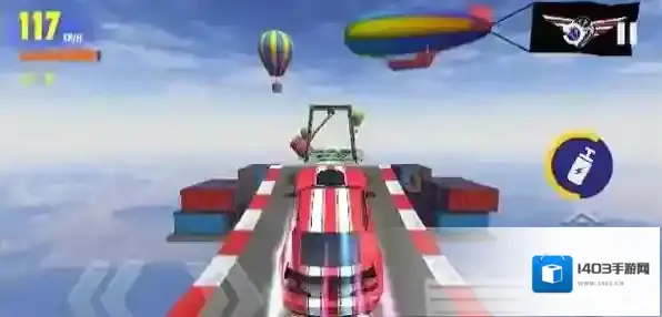 2、在高空赛道,关注左上角速度、状态,避集装箱,借加速冲跳台,利用浮空段调整,稳落地。