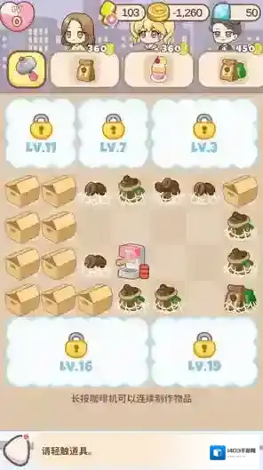2、点击咖啡机可以获得各种物品,两个相同的物品可以合成更高的等级。