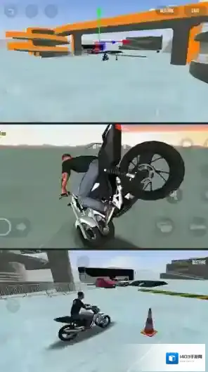 1、真实物理引擎打造极致驾驶体验,玩家能感受到摩托车在复杂地形中的颠簸与倾斜,每一次加速和刹车都需精准把控,沉浸感十足。