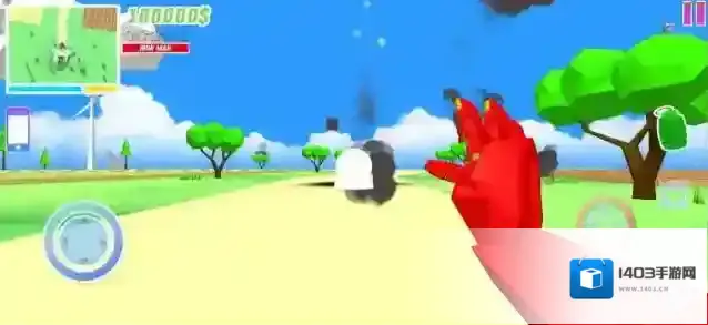 2、呈现了游戏内的场景,角色装备类似钢铁侠的手部武器,界面有金钱显示、角色名,还有地图、手雷等元素,属于开放世界沙盒类场景。