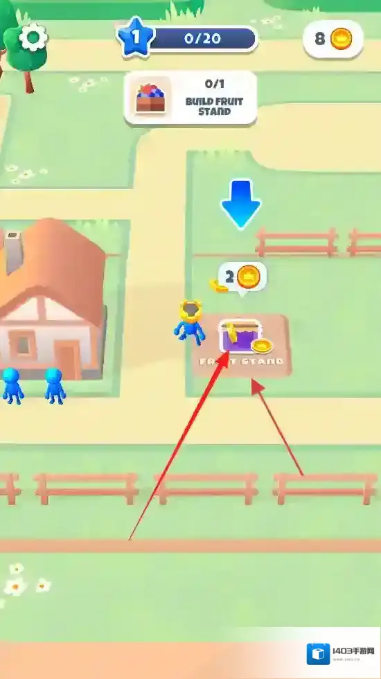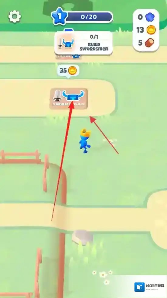 1、“建造设施”,消耗金币,点击建造水果摊、剑士营地等建筑,拓展小镇功能。