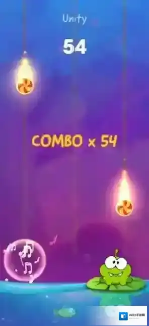 1、核心玩法是点击屏幕移动青蛙,接住从天而降的糖果,普通糖果得1分,特殊糖果得10分,漏接糖果会中断连击计数。