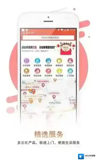 2、将附近的服务商家进行了汇总,可以搜索周边服务商,线上预定下单。