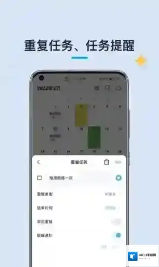 重要的纪念日、信用卡还款、学生的课程等可以设置重复任务显示在日历上,还可以通过微信提醒