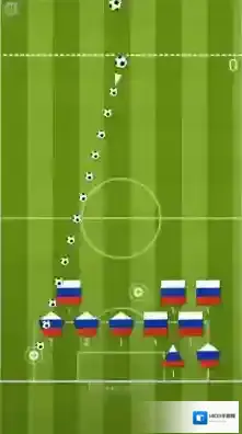 2、在弹球世界杯游戏中,需要操控足球弹射,碰撞带俄罗斯国旗的图形,利用弹射机制消除目标积累分数。