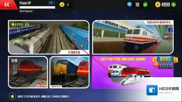 1、启动游戏后首先进入车库系统,在数十种列车类型中选择心仪车型,从冒着白烟的老式蒸汽机车到流线型的现代高铁,每种列车的操控性能与驾驶手感各不相同。
