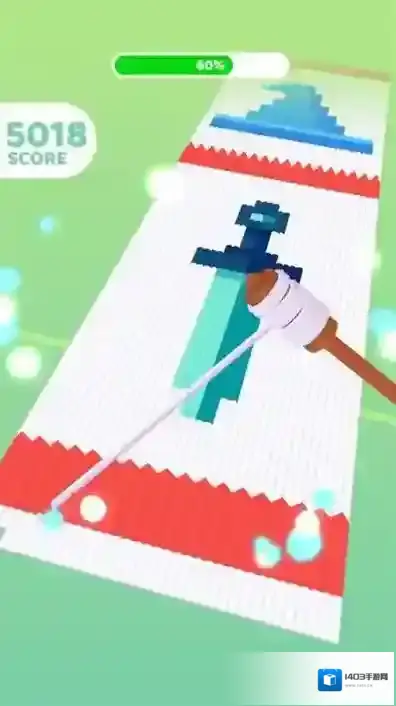 1、游戏箭头指示方向操控工具,沿着图案线条清理,提升【SCORE】分数。