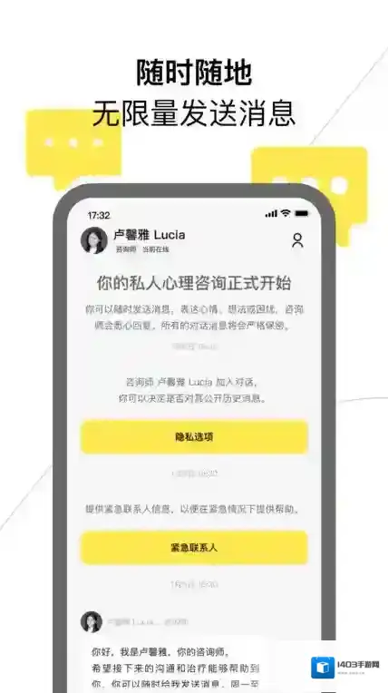 在你特别需要帮助的时候,哪怕是白天的8点,晚上的12点,凌晨的3点,你都可以进入私人咨询室,准确地写下你的感受,让咨询师更加了解你任何时候的状态,找到最佳的咨询方案.每天不限制咨询时长,这样你就可以从咨询中获得最大的收益.