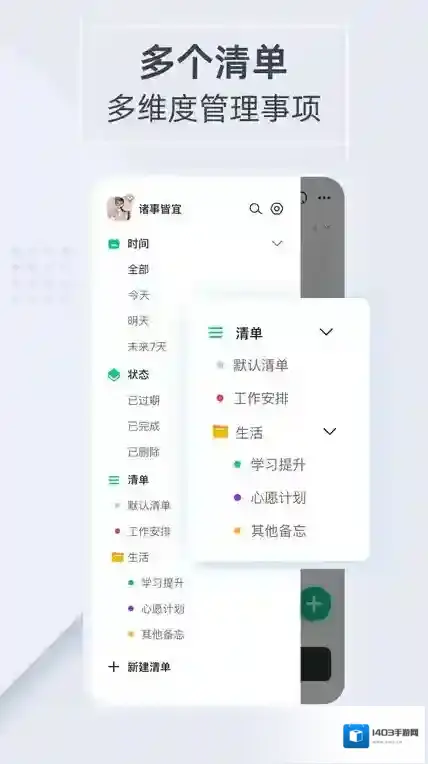 清单支持按时间、按状态、自定义排序,日历支持时间点视图