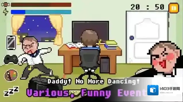 2、双数值管理系统:实时监控不断变化的压力值(玩游戏过久会升高)与饥饿值(时间推移会上升),玩家需精准平衡学习伪装与娱乐需求。