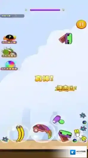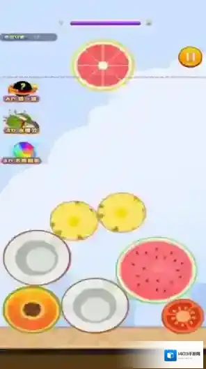 2、无尽挑战模式,水果会持续加速下落。比拼谁能坚持最久,创造最高分数记录,登上全球排行榜。