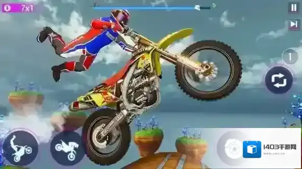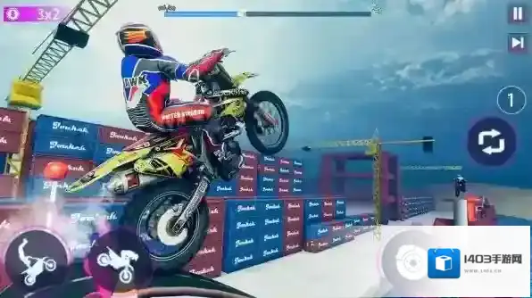 3、技巧进阶提升:逐步挑战高难度特技组合(如连续空中转体+落地漂移),通过反复练习操作细节,提升特技完成的流畅度与精准度,成为真正的摩托车特技高手。