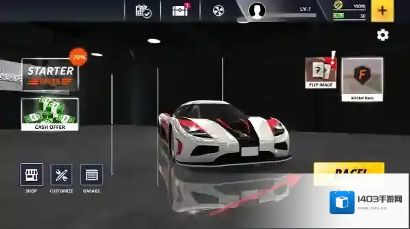 3、车辆养成体系:使用比赛奖金解锁高级改装部件,逐步提升赛车加速性能、弯道操控性,解锁更高级别赛事资格。