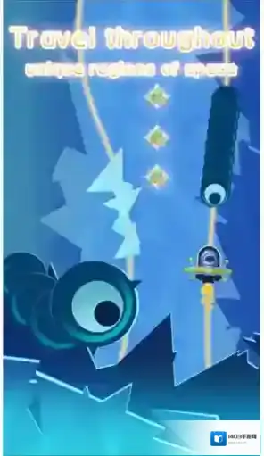 2、视觉表现突出,采用高对比度的霓虹色系渲染太空场景,飞船轨迹带有炫光拖尾效果,能量晶体收集时触发绚丽光爆。