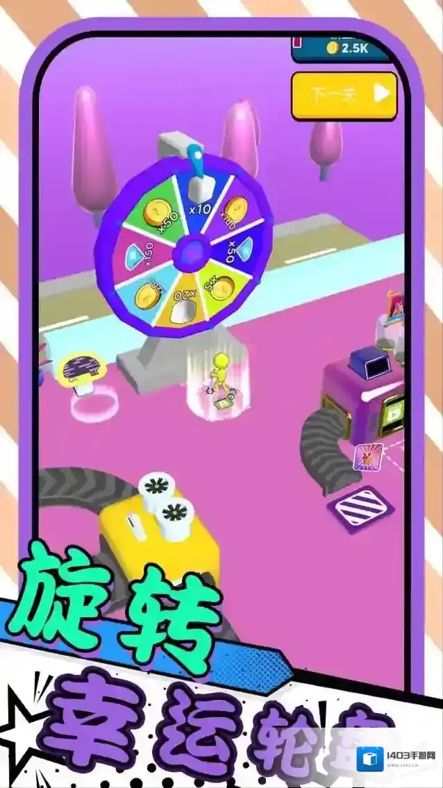 3、通关后,点击箭头指向的轮盘位置参与抽奖,获取金币、道具等奖励,用于提升角色或解锁新内容,再点击“下一关”继续挑战。