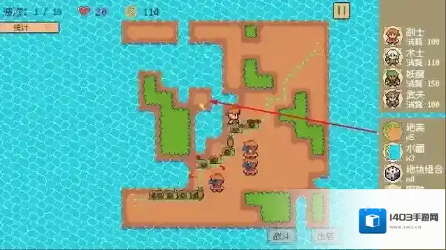 3、“波次防御”,应对1-19等多波敌人进攻,根据战况调整兵种,坚守岛屿,完成关卡。